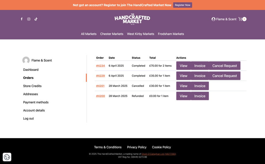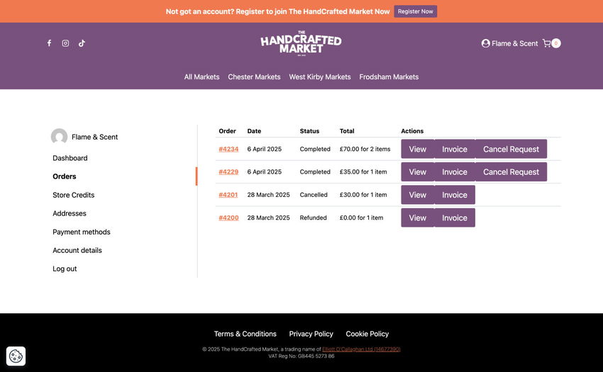 If you need to cancel your stall at an upcoming market, please log in to your account.