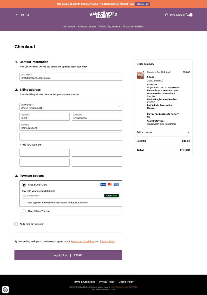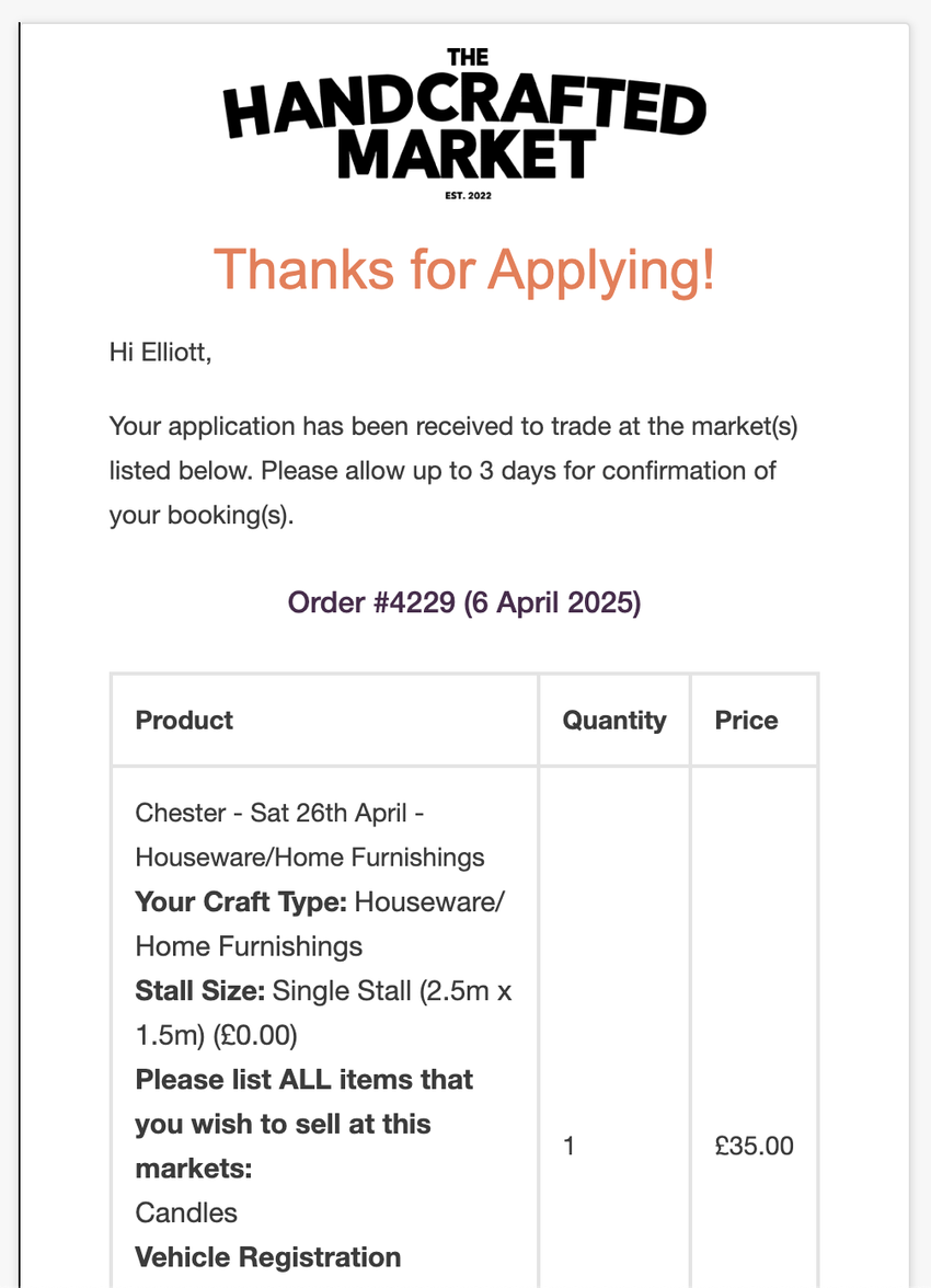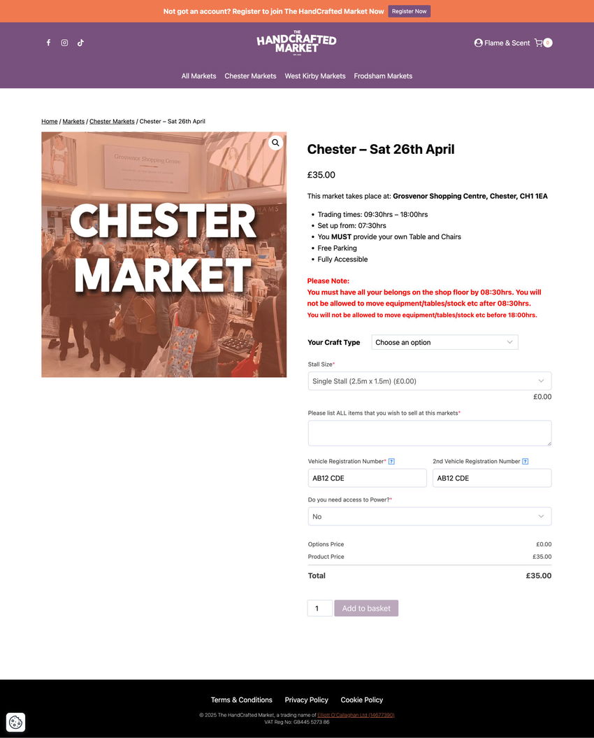 To apply for an upcoming market, you must visit apply.thehandcraftedmarket.co.uk and log in to your account.
