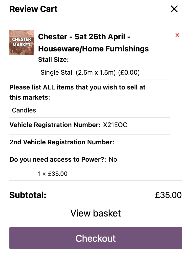 Your cart will slide out from the side with all the markets you have added to your basket.