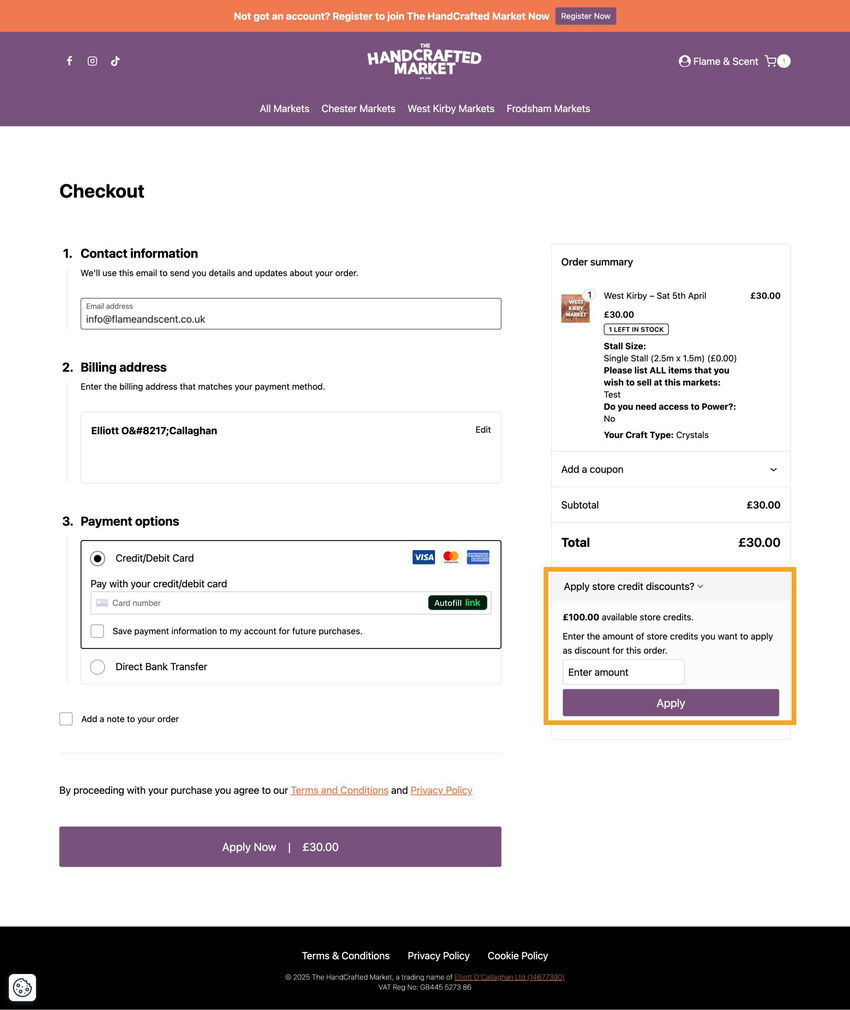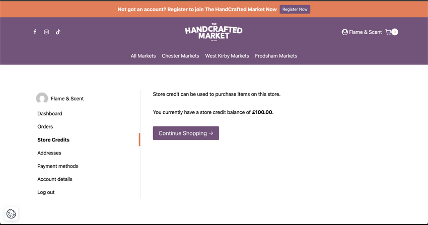 To use your credit, add a market to your basket and head to the checkout.