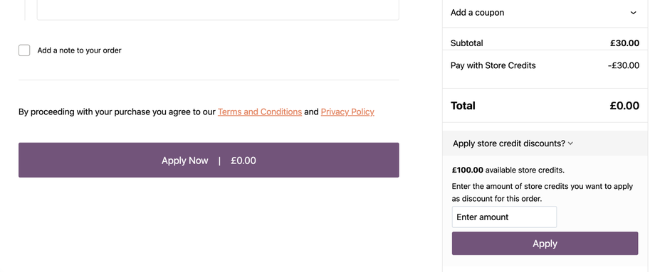 This will show how much credit you have available to spend. Enter the amount of credit you would like to use in the 'Enter Amount' box and click 'Apply'.