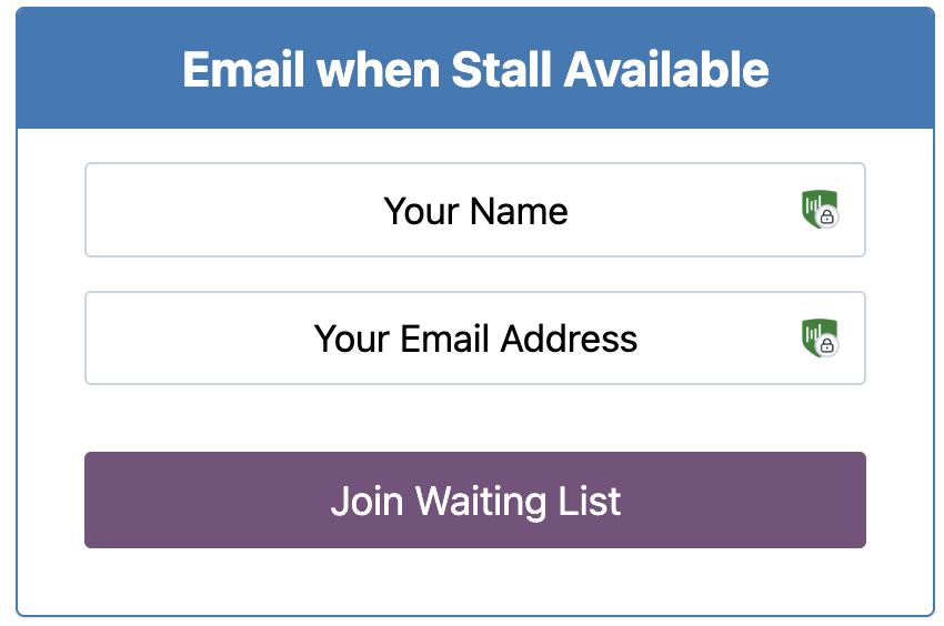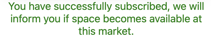 If a market is marked as FULLY BOOKED or your craft type is OUT OF STOCK, you can add yourself to the waiting list.